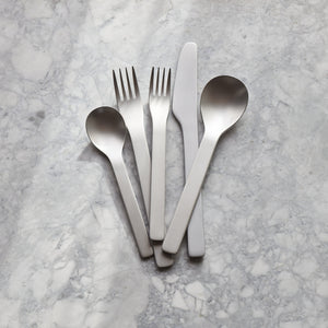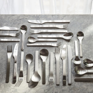FLINT is a modern cutlery range which has been meticulously designed with a great deal of care and passion over several years striving for perfection! Well-weighted and minimal in style, the soft forms make the range tactile and a pleasure to use. The gentle radius to the underside of the handle allows each item to sit comfortably in the hand.