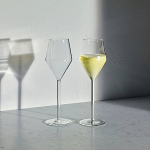 JUNIPER is a sculptural glassware range designed to elevate the drinking experience by enhancing both flavour and aroma. The glasses are graphic in form yet functional and satisfying to use, and their striking geometric silhouette adds interest to any table, bar or drinks trolley.