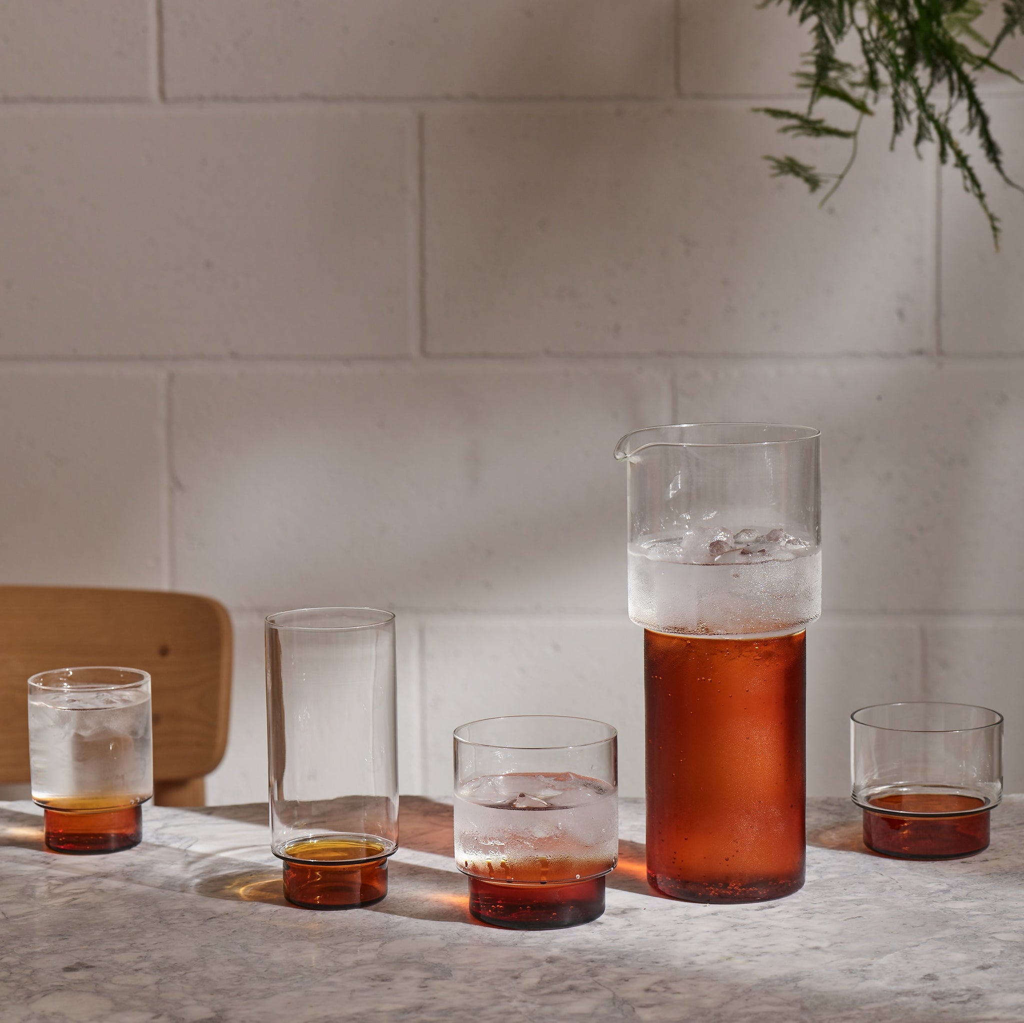 The range is well-proportioned and graphic in form, and the subtle accent of coloured glass elevates the drink whilst still allowing you to appreciate the shade of the drink.
