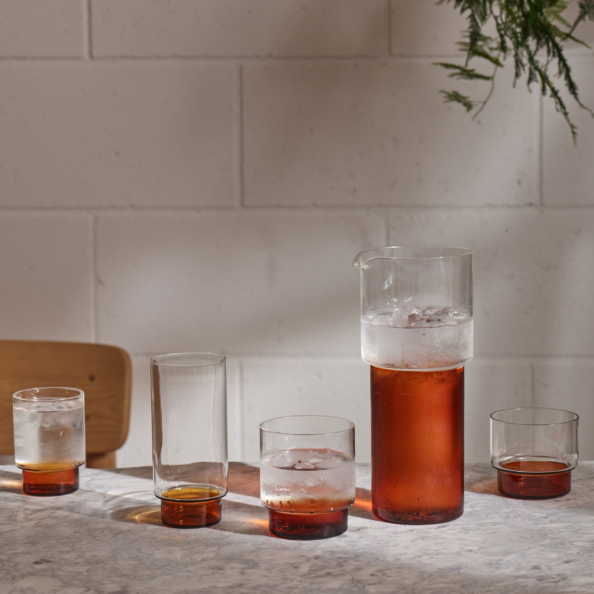 The range is well-proportioned and graphic in form, and the subtle accent of coloured glass elevates the drink whilst still allowing you to appreciate the shade of the drink.