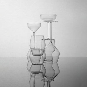 JUNIPER is a sculptural glassware range designed to elevate the drinking experience by enhancing both flavour and aroma. The glasses are graphic in form yet functional and satisfying to use, and their striking geometric silhouette adds interest to any table, bar or drinks trolley.