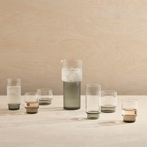 The range is well-proportioned and graphic in form, and the subtle accent of coloured glass elevates the drink whilst still allowing you to appreciate the shade of the drink.